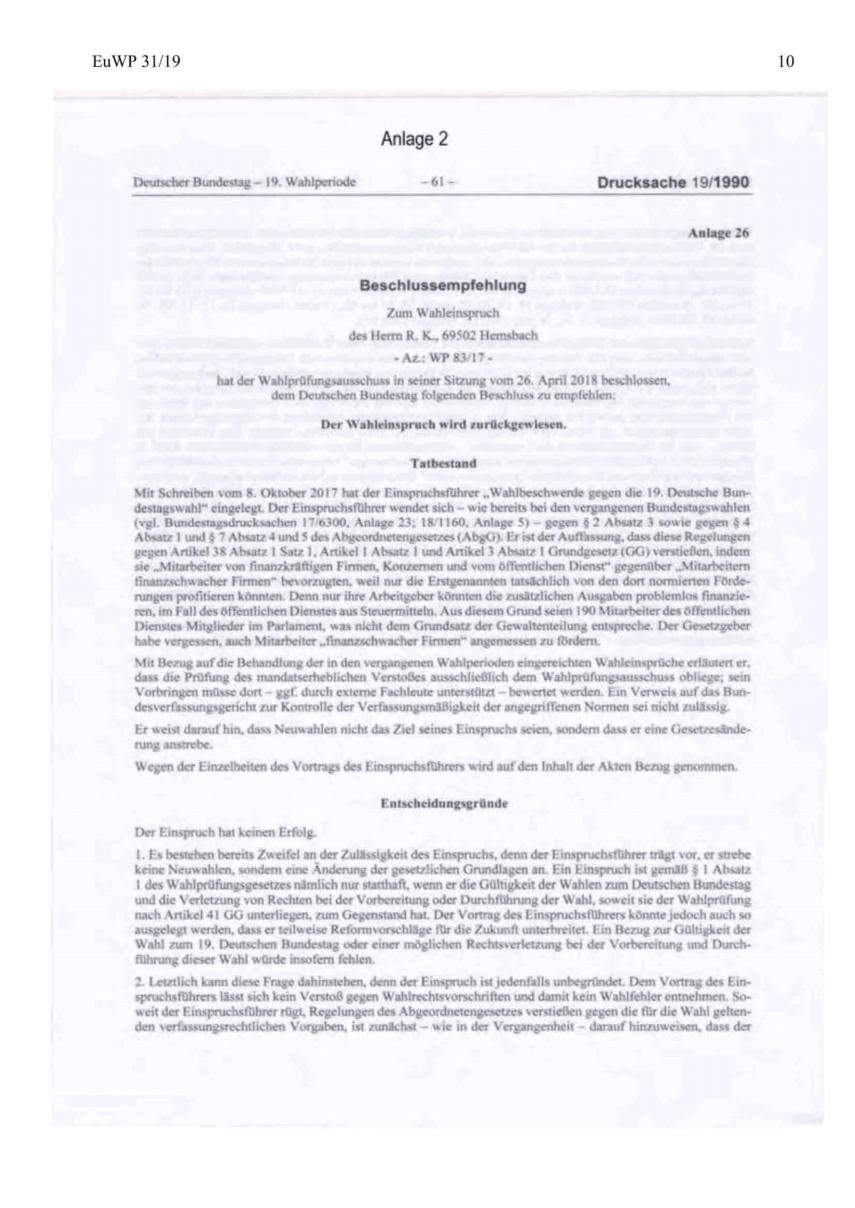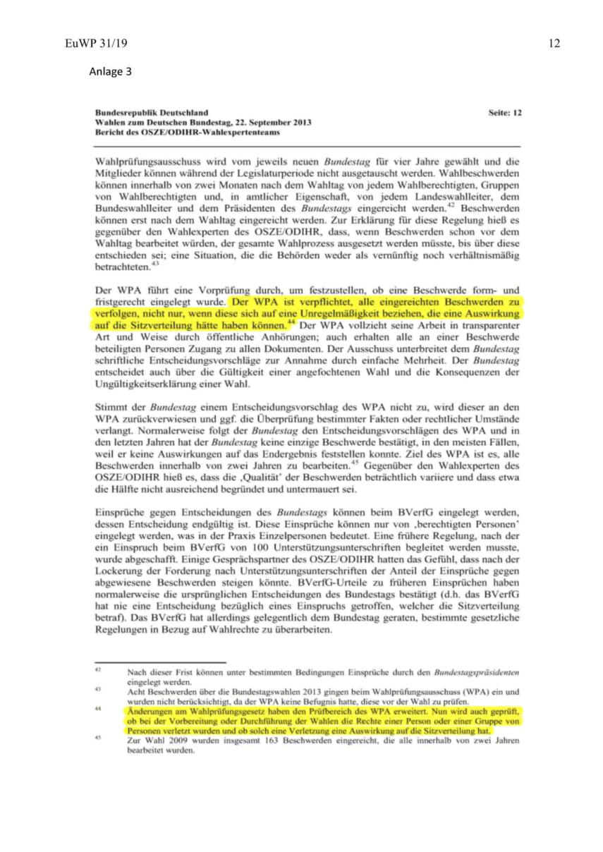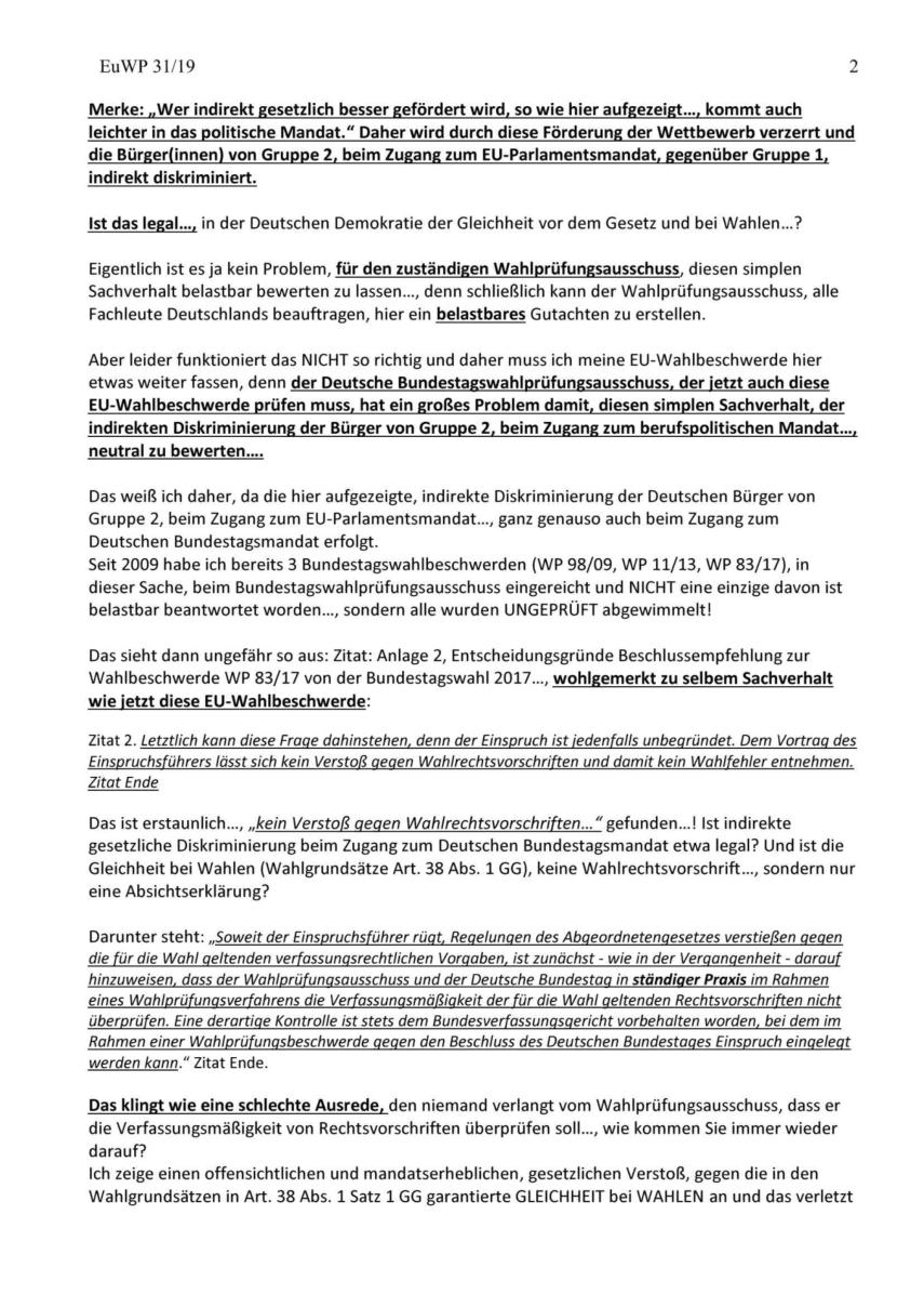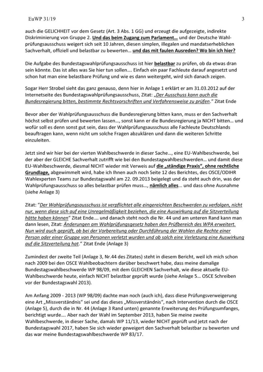 Die aktuelle Wahlbeschwerde EU-WP 31/19 ist zwar gegen die Europa Wahlen gerichtet, aber der Sachverhalt ist der GLEICHE wie bei den Bundestagswahlen. Sie gibt einen guten Überblick, wie sich der Bundestagswahlprüfungsausschuss immer wieder weigert irgendetwas zu prüfen.Diese Wahlbeschwerde wurde wieder zurückgewiesen und liegt nun als Wahlprüfungsbeschwerde beim Bundesverfassungsgericht und der Berichterstatter müsste demnächst mal was berichten.