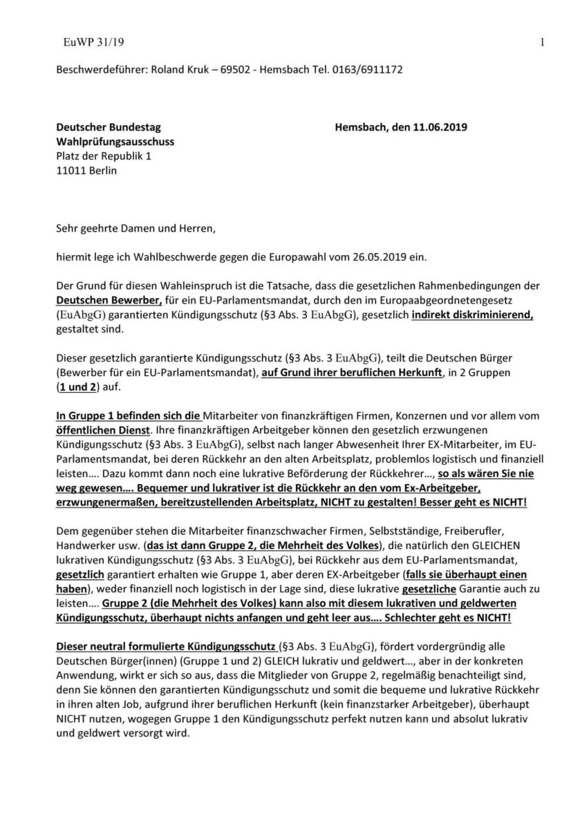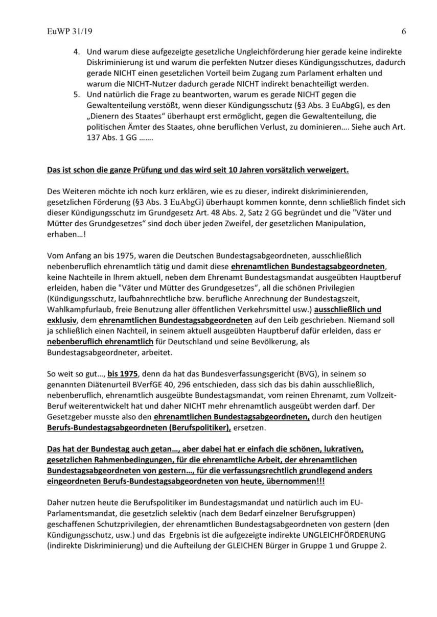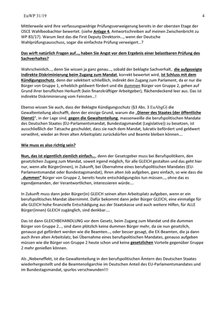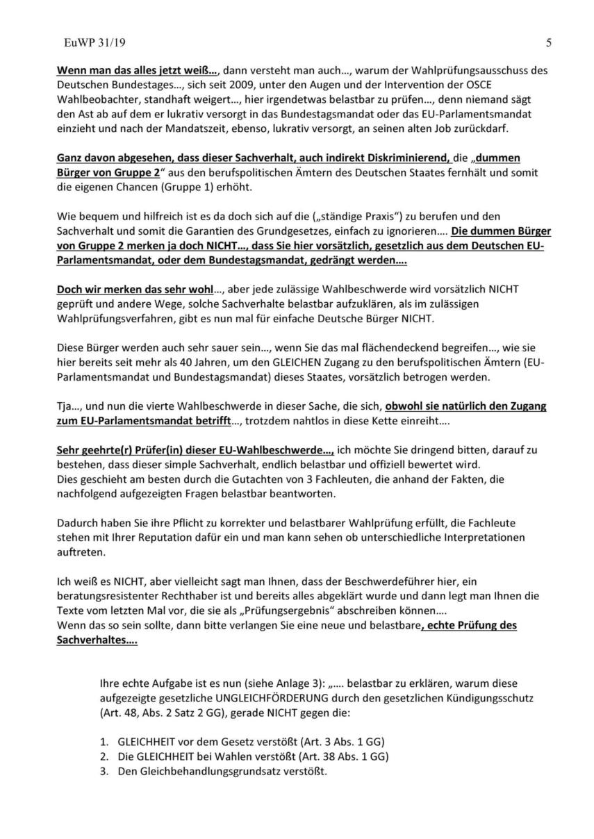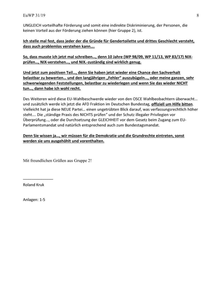 Die aktuelle Wahlbeschwerde EU-WP 31/19 ist zwar gegen die Europa Wahlen gerichtet, aber der Sachverhalt ist der GLEICHE wie bei den Bundestagswahlen. Sie gibt einen guten Überblick, wie sich der Bundestagswahlprüfungsausschuss immer wieder weigert irgendetwas zu prüfen.Diese Wahlbeschwerde wurde wieder zurückgewiesen und liegt nun als Wahlprüfungsbeschwerde beim Bundesverfassungsgericht und der Berichterstatter müsste demnächst mal was berichten.