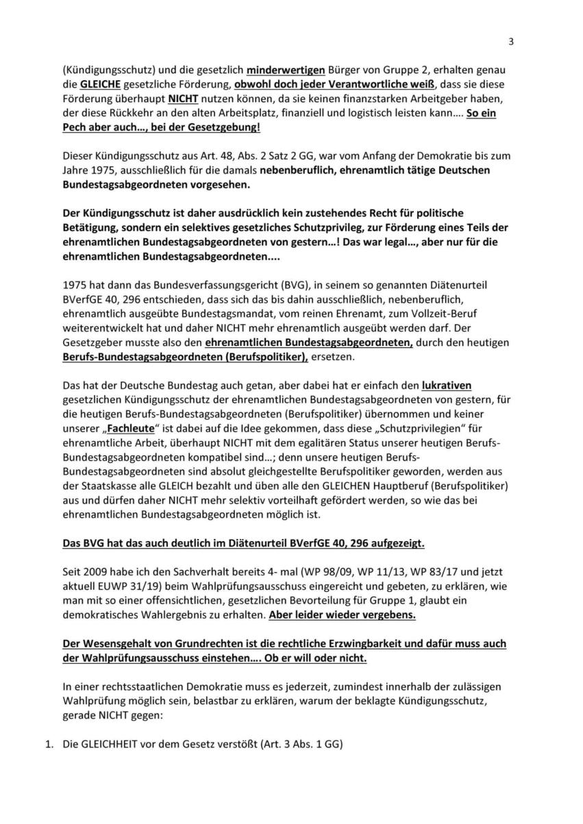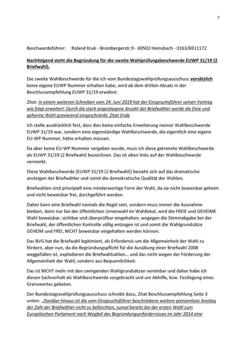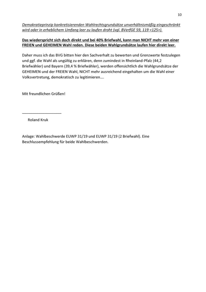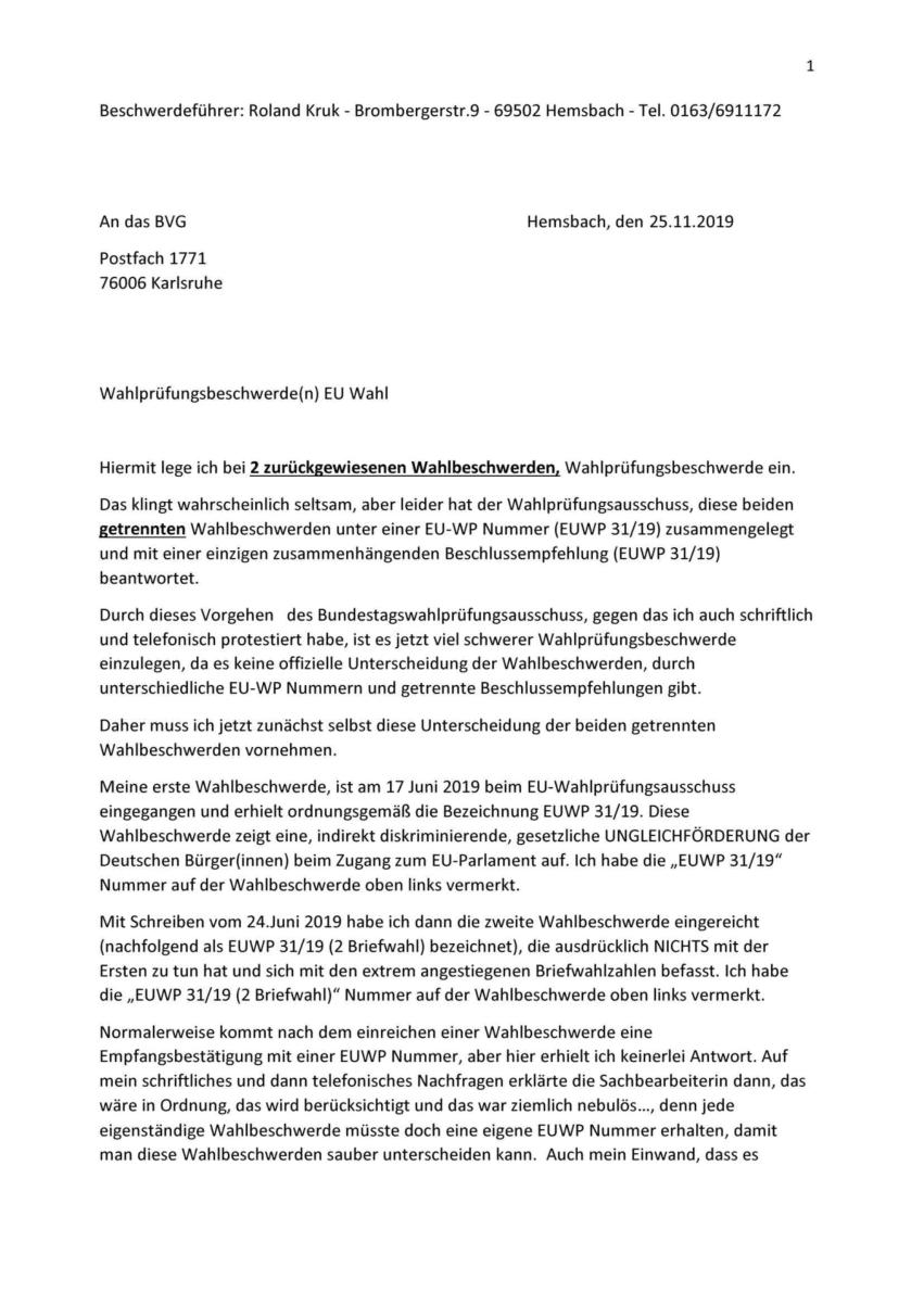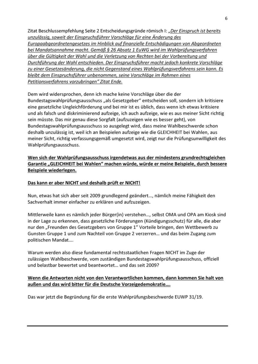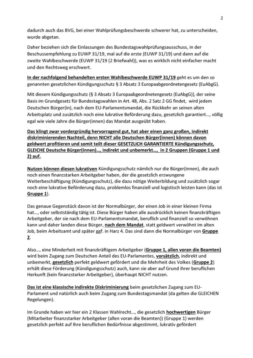 Das hier ist die Wahlprüfungsbeschwerde beim BVG 2 BvC 55/19. Das ist die 2. Instanz, der EU- Wahlbeschwerde EuWP 31/19