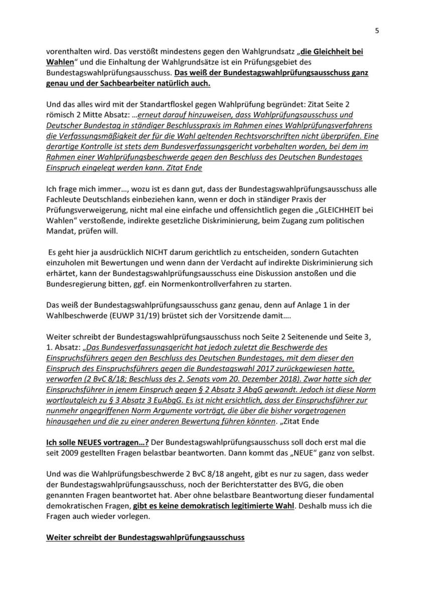 beim Bundestagswahlprüfungsausschuss eingereicht habe…., aber der Bundestagswahlprüfungsausschuss hat