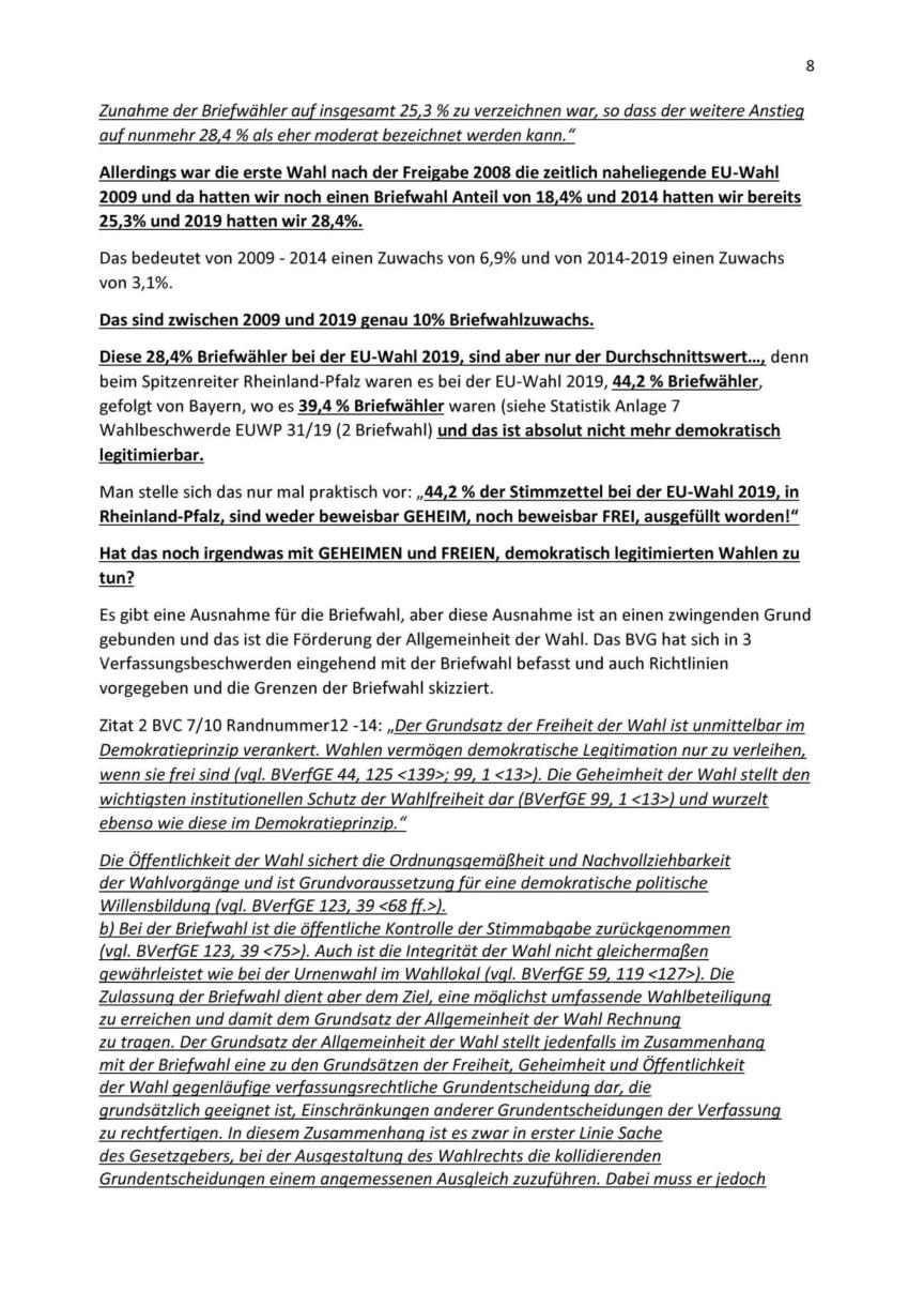dieser Klage erreichen, denn In Bayern und Rheinland-Pfalz sind wir schon bei 40% Briefwahl (vor